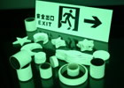 反射萤光反光夜光胶带 环保型特殊产品,其中安全标识类产品为消防认证产品。基材为非放射性无毒材料,强光照射5-10分钟或自然光源(室内灯具)照射15-20分钟,即可发光,无须借助其他任何能源。初始亮值非常高,持续发光时间大于8个小时,可长期使用。耐磨、防水,使用寿命长,可粘贴于各种物表,除民用、警用消防标识外,兼具装饰、指示、警示功能,可广泛应用于国民经济各个行业。