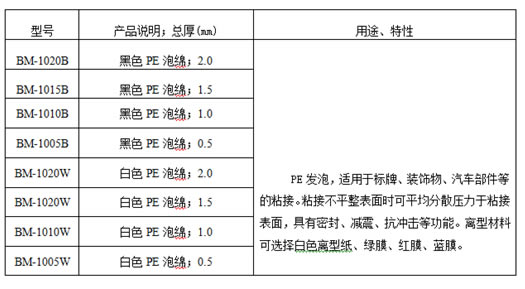 Features : PE Foam Tape Has Characteristic of Sound-Absorbing、Shock-proofing and Sealing Which Convenient to Bond to Various of Products. PE Foam Tape has Strong Stress Dispersion、 Absorption Ability、Good Weather Resistance and Durability. Water Resistance: Closed-cell Structure、Non-absorbent、Moisture-proof and Waterproof. Corrosion Resistance: Seawater Resistance、Oil、Acid、Alkali and Other Corrosion Chemical Resistance、 Antibacterial、Non-toxic、Tasteless and Non-polluting. Processing: No Splice., Easy for Hot Pressing, Cutting, Coating and Laminating. Vibration Resistance: Good Resilience and Tensile Strength; Good Shockproof. Heat-Insulating: Heat Insulation, Cold-proof, Good Resistant to Low Temperature and Exposure. Sound Insulation: Closed Foam, Good Sound Insulation.